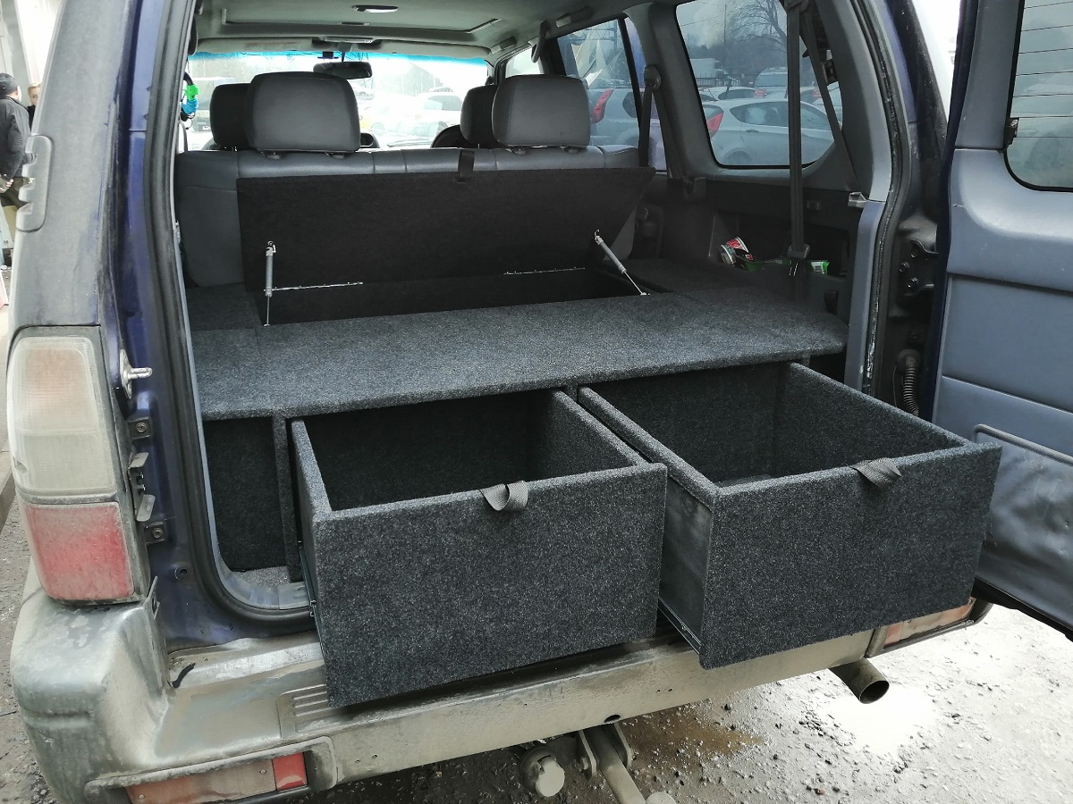 -Органайзеры позволяют сделать пол ровным при сложенных задних сиденьях, что очень удобно для размещения спального места.