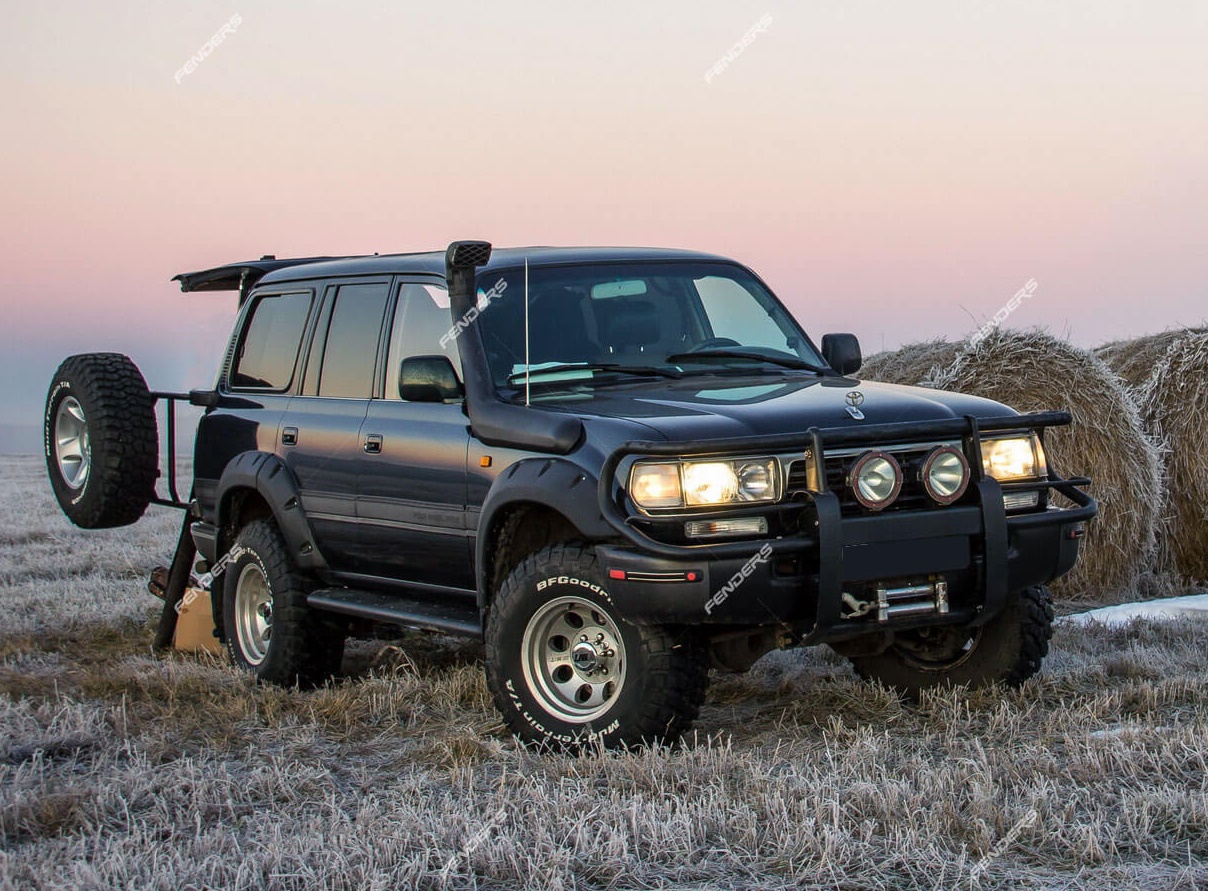 Расширители колесных арок предназначены для установки на автомобиль Toyota Land Cruiser 80, под стандартные колесные арки.