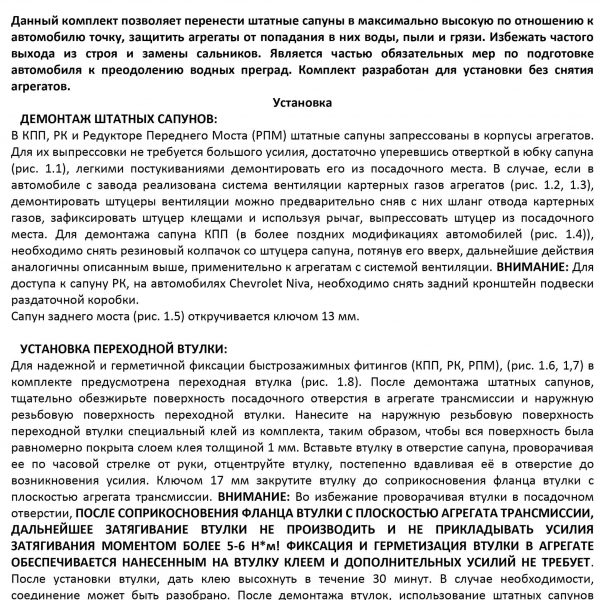 СТАЛЬНЫМ РПМ) Укомплектован морозостойкой трубкой с диапазоном температур от -50…+100°С и легкими поворотными фитингами, надежно фиксирующимися в агрегатах трансмиссии. Данный комплект позволяет перенести штатные сапуны в максимально высокую по отношению к