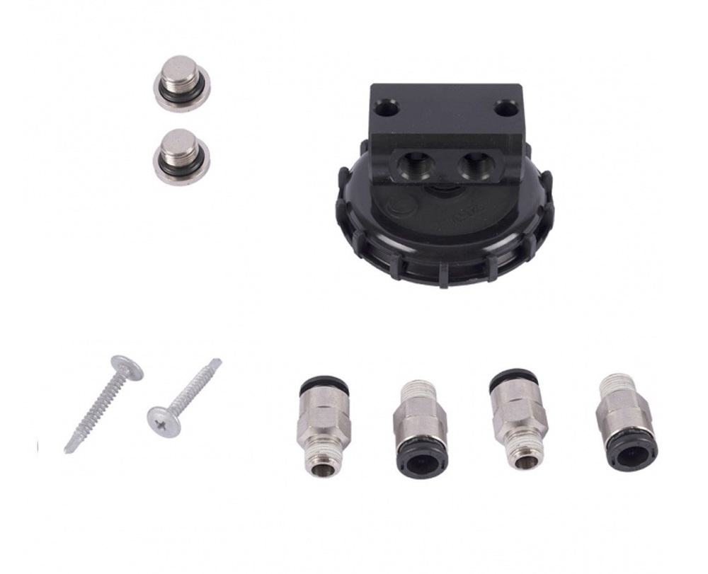 Коллектор сапуна допускает подключение двух или четырех агрегатов (в комплекте имеются заглушки)
