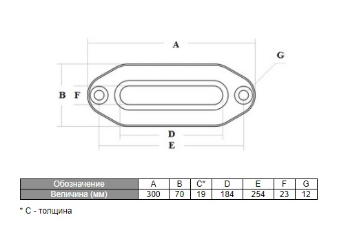 Размер отверстия под трос по горизонтали 182 мм