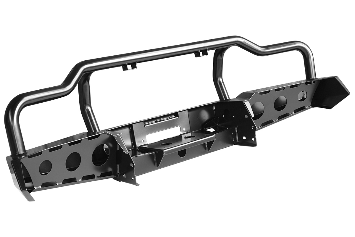 Бампер оснащен интегрированной площадкой для лебедки и оборудован мощными упорами под реечный домкрат, а также буксирными проушинами для работы с рывковым тросом или буксировочной стропой.